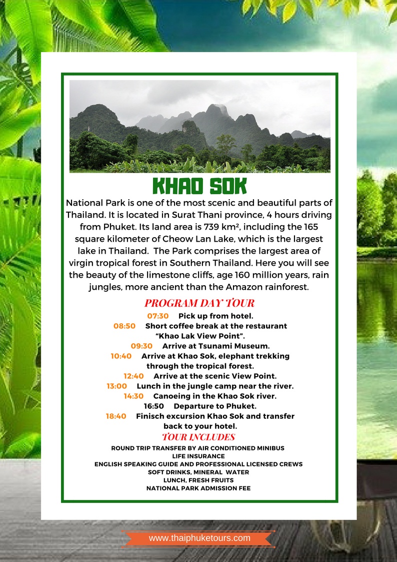 per la posizione geografica e’ un ottimo punto di partenza per i parchi marini nazionali delle Similan e di Surin,attrazione del parco sono i numerosi elefanti che vi porteranno in un’ emozionante giro nella foresta tropicale.